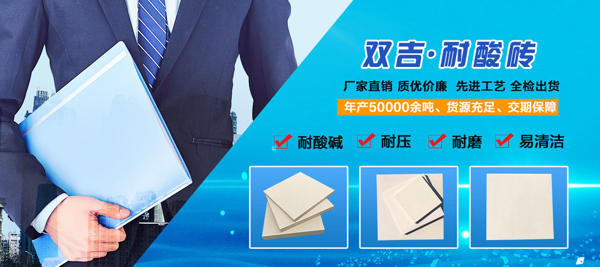 耐酸瓷磚主要成分是二氧化硅,它在高溫焙燒下形成大量的多鋁紅柱石,這是一種耐酸性能很高的物質(zhì),耐酸磚結(jié)構(gòu)緊密,吸水率小,